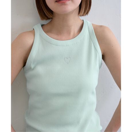胸元のキラッとしたハートがポイントになったタンクトップ。