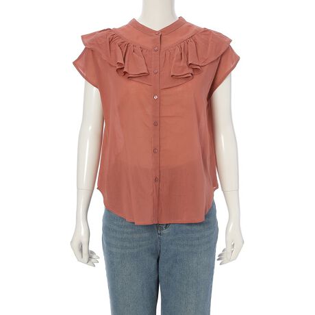 立体感のあるフリルデザインが目を惹くコットンブラウス。ほどよい透け感のある素材が、女性らしさを引き立ててくれます。カジュアルなデニムパンツにもフェミニンなスカートにも合わせやすく、さまざまなスタイリングが楽しめるアイテムです。