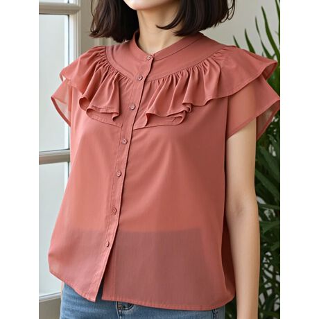 フリルデザインコットンブラウス