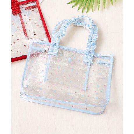 総柄がかわいいスイムバッグは、持ち手のフリルもポイントです♪しっかりとマチ付きでスイムグッズがしっかり入るサイズ感が◎プールやビーチへのお出かけにピッタリのPVC素材です。