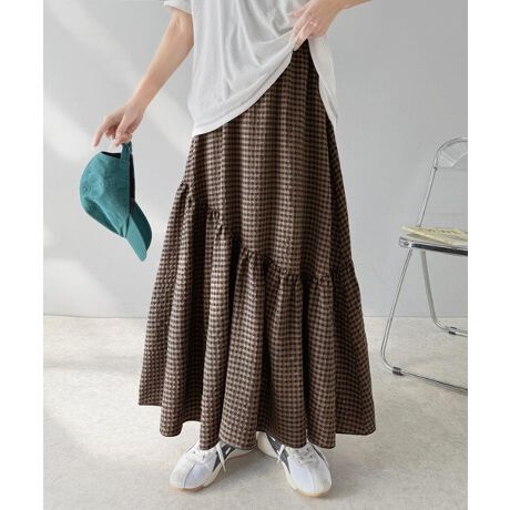 あなたのスタイルを格上げする、シアーサッカーティアードスカートは、今すぐワードローブにオススメしたい一着です。