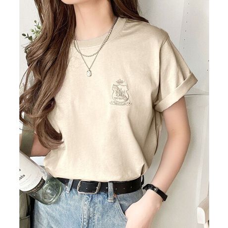 胸元のエンブレム刺繍がアクセントの大人Tシャツ。