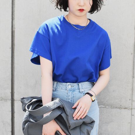 無地TEEなので、柄や刺繍のボトムと合わせて、旅行やリゾートにもおすすめ。