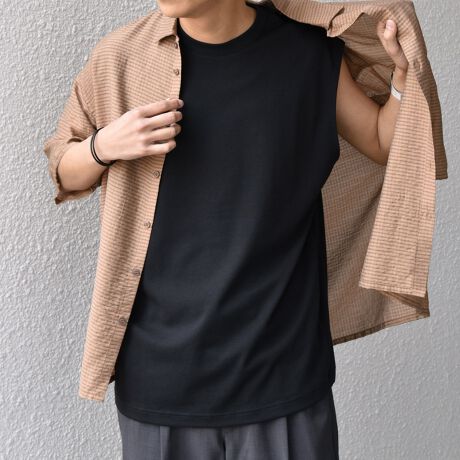 単品としてもインナーとしても◎な万能ノースリーブTシャツ