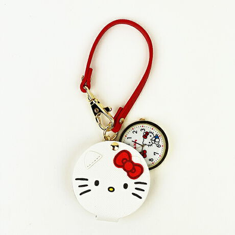 ハローキティのフェイスダイカットウォッチです。可愛いフェイス型ポーチ付き☆☆バッグなどにつけられます♪文字盤のキティちゃんも可愛くておすすめです☆【全長:16.5cm】【ポーチサイズ:5.5cm×1.4cm】