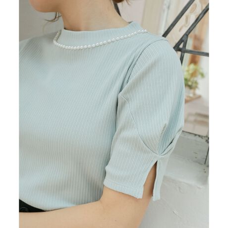 首元にパールをあしらい、上品な雰囲気に仕上げました。