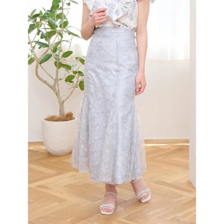 繊細なフラワー刺しゅうがレディライクな印象を与えるマーメイドスカート。