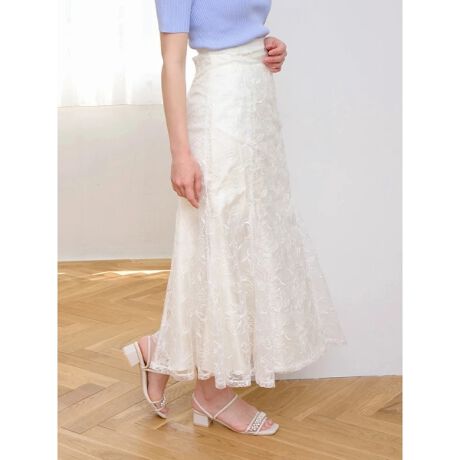 繊細なフラワー刺しゅうがレディライクな印象を与えるマーメイドスカート。