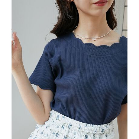 ネックラインのスカラップがデコルテをきれいに見せてくれる、程よくレディライクなTシャツ。