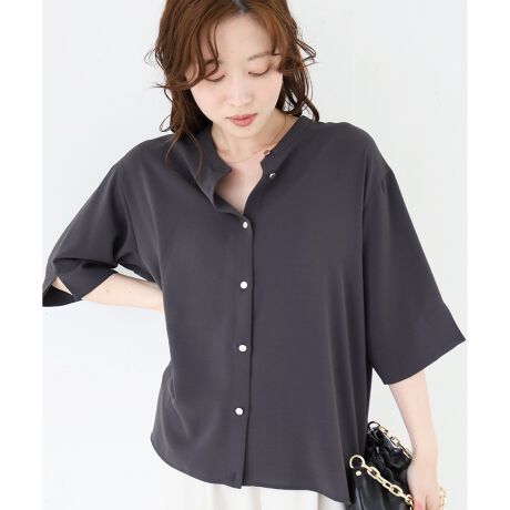 シンプルなシャツデザインですが、ゆったりとしたシルエットと落ち感のある素材で、カッチリせず柔らかい印象で着て頂けます。