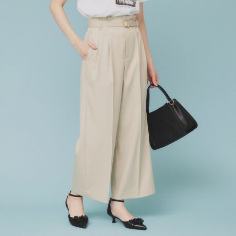 タックウエスト変形バックルワイドパンツ【洗濯機可・イージーアイロン・防シワ・ストレッチ】
