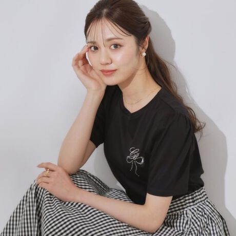 袖山にギャザーを入れた袖シルエットがシンプルで可愛く、着回ししやすいデザインです