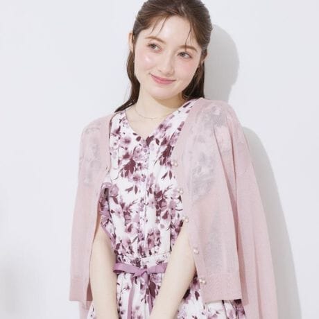 ダブルパール調釦がアクセントのシアーニットカーディ
