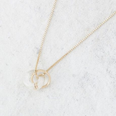 メタルリングとクリアリングの掛け合わせが透明感を演出する夏らしいネックレス