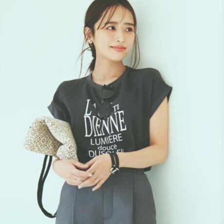 カットソー風の布帛素材にプリントを施したプルオーバーは、シンプルでありながらも印象的なスタイルを実現します。