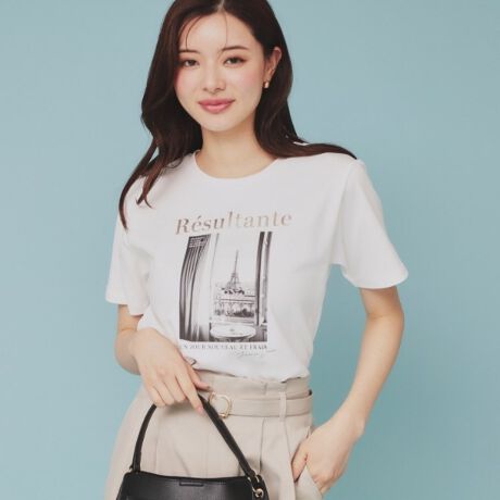 転写箔プリントが印象的なショート丈Tシャツ