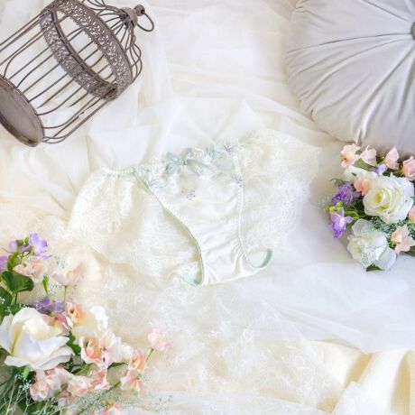 後身生地は総レースになっており、伸縮性のあるレースが肌に心地よくフィットします。足口にはゴムを使っていないので食い込まず、少しゆとりをもった履き心地です。ボトムスへもショーツラインが響きません。