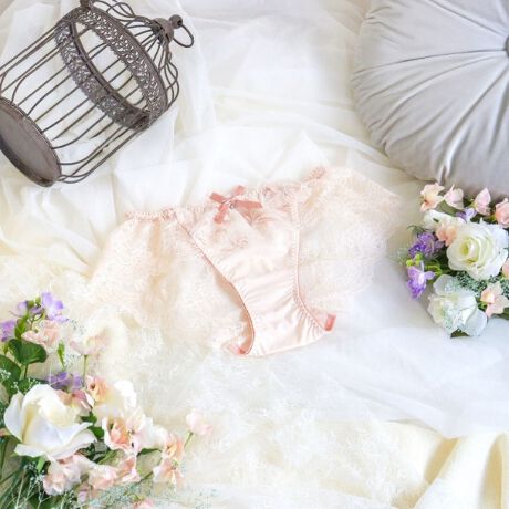 後身生地は総レースになっており、伸縮性のあるレースが肌に心地よくフィットします。足口にはゴムを使っていないので食い込まず、少しゆとりをもった履き心地です。ボトムスへもショーツラインが響きません。