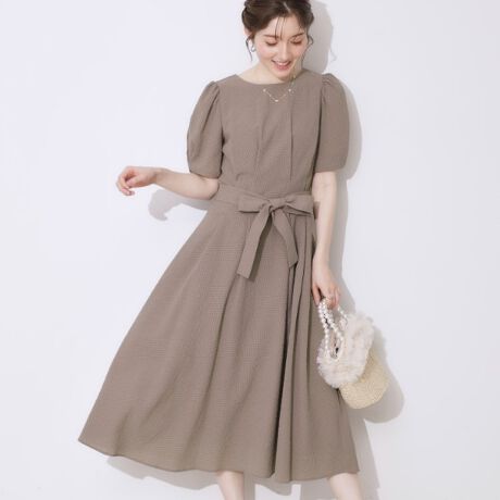 ・saori(153)初夏におすすめのサッカー生地で着心地がよく、爽やかな印象のワンピースです!ウエストデザインで細見え効果もあり、上品なきれいめスタイルをお楽しみ頂けます!