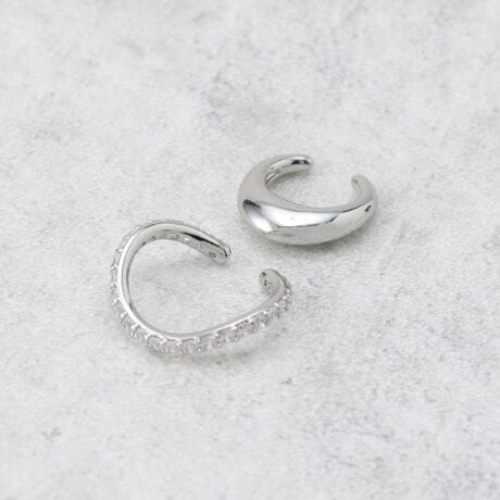 ビジューとメタルのシンプルな組み合わせのセットイヤーカフ