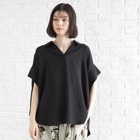 スキッパーのシャツは、ゆるっとしたシルエットが特徴で、シンプルながらも丸みを帯びたシルエットがオシャレさを引き立てます。