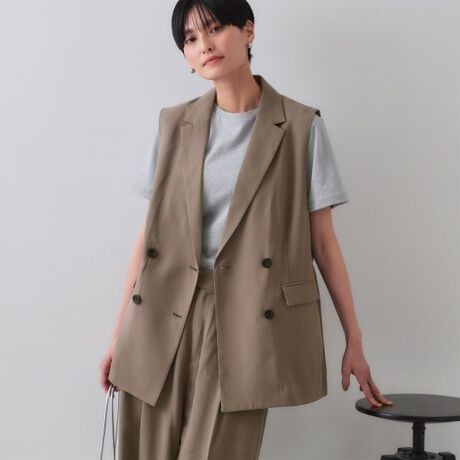・軽く羽織れる裏地無しのダブルブレストテーラードジレ(ベスト)