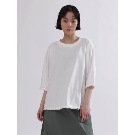 綿100%素材に加え、ゆったりとしたドルマン型がリラクシーな着心地を叶えます。