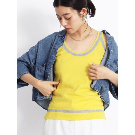 ぱっと目を惹くビビットなカラーニットタンクトップ。