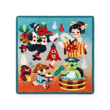 ちょっぴり怖いけれど、ついついのぞき見してしまう『ヨウカイオマツリサワギ』のハンカチ。天狗やろくろ首、カッパなど、たくさんの妖怪たちが楽しそうに過ごしています。背景をグラデーションにして、不思議な世界観を表現しました。周りの視線を独り占めできそうな、遊び心のある一枚です。
