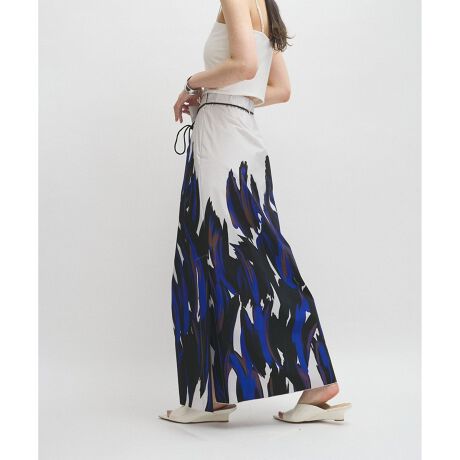 リップをテスターした様なモチーフにニュアンスカラーで奥行きを付け、パネルプリントに落とし込み、動きのある見え方のプリントに仕上げた一着。