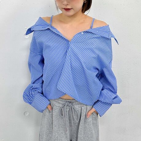 羽織としても、前を閉じてきちんと感のあるシャツとしても、オフショルでヘルシーなカジュアルスタイルにもスタイリング可能。