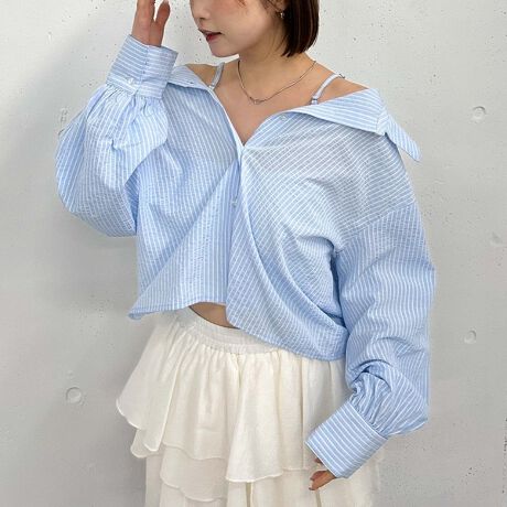 羽織としても、前を閉じてきちんと感のあるシャツとしても、オフショルでヘルシーなカジュアルスタイルにもスタイリング可能。