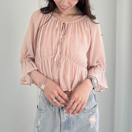 袖はキャンディスリーブになっていて華奢に見せてくれます。