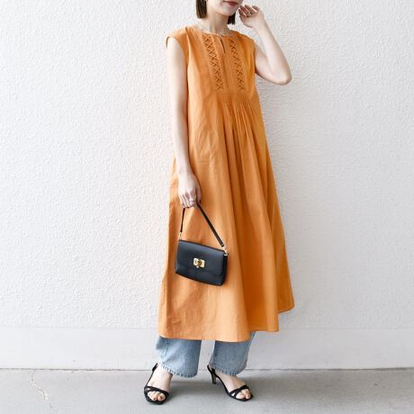 フロント部分のロープデザインとピンタックが印象的なワンピース。