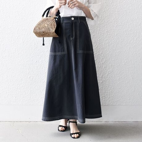 配色ステッチがアクセントになったスカート。