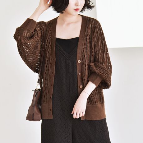 ワンピースやノースリーブなどにさらっと着流すように羽織るだけでサマになってくれる一着です。