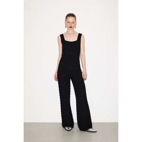 THROW by SLY【SQUARE NECK JUMPSUITS】■POINT:立体的なパターンニッティングが目を惹くジャンプスーツ。■DETAIL:リラックス感がありながらスクエアネックの程よい肌見せ感が着用するだけで女性らしさのあるアイテム。ストレートシルエットで体系カバーが出来る程よいサイズ感で一枚で完成出来るアイテム。■STYLING:足元にはフラットシューズはもちろん、ヒールを合わせて女性らしくスタイリングするものおすすめ。■FABRIC/MATERIAL:立体的なパターンニッティング素材を使用しています。※洗濯機表示の場合はネットに入れて弱水流で洗って下さい。手洗いの場合はもみ洗いを避けて軽く押し洗いして下さい。洗濯後は、速やかに形を整え干して下さい。水分を含み重くなります。丈の長い製品、袖など伸びやすい箇所はハンガーで支えたり、平干しをすることで型崩れを防止できます。本品は素材の特性上色落ちします。洗濯、クリーニング、着用(使用)時に他の衣類や雑貨、家具類に色移りする事があります。特に汗や雨等で湿った状態では、色落ちが顕著になります。白、淡色との組み合わせは避け、お取り扱いには十分ご注意下さい。本品は丈が長いニット製品の為、総丈に個体差が生じます。場合によっては4□5cm以上の差が生じることがありますが、編地の特性上問題ありません。[注意事項]※画像の商品はサンプルです。実際の商品と仕様、加工が若干異なる場合があります。※画像の商品は光の照射や角度、お使いのモニター環境により、実物と色味が異なる場合がございます。※着用、お取り扱いの際は、アテンションタグをご確認ください。※一部予約商品につきましては生産上の都合によりお届け予定日や店頭発売と前後する場合もございます。※追加生産商品は、一部の店舗、通販で販売中の場合がございます。予めご了承下さい。