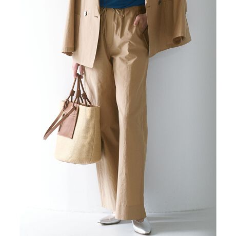 イタリアMANTECO社のインポート素材を使用した上質なカジュアルワイドパンツ。セミワイドシルエットのパンツは、程よくルーズなドロストデザインがポイントで、こなれた印象に仕上げてくれます。サイドに細く入った切り替えがタテのラインを強調することでよりスタイリッシュに。単品ボトムとしてはもちろん、同素材のジャケットとのセットアップスタイルもおすすめです。カラーは、甘さを抑えた大人エレガントな雰囲気のあるキャメル(#034)、暑い時期にも落ち着いた洒落感をくれるダークブラウン(#035)の2色展開です。