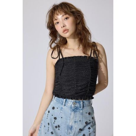 【たっぷりギャザーの入った上品でフェミニンな2WAYビスチェ】■ポイントしなやかで丈夫なラメ生地にフロント、サイドとギャザーをたっぷりと入れた立体感のあるトレンドライクなビスチェが登場。胸元のフリルも、きちんと感のある素材で甘くなりすぎず大人上品な雰囲気で着こなすことができます。伸縮性もしっかりあるのでフィット感も抜群です。■ディティールたっぷりなギャザーディティールで、華やかかつリッチ感のあるアイテムです。■スタイリング肩紐は自由にアレンジできます。紐はヘッドアクセにしても◎肩紐を全て取り外してベアトップスとしても着用可能。ショート丈なので、さまざまなボトムに合わせてもバランスがとりやすいです。■生地透け感:なし裏 地:あり伸縮性:あり光沢感:あり厚 さ:薄手■商品のお気に入り登録お気に入りアイテムの再入荷・在庫1点などの通知を受け取ることができます。[注意事項]※画像の商品はサンプルです。実際の商品と仕様、加工が若干異なる場合があります。※画像の商品は光の照射や角度、お使いのモニター環境により、実物と色味が異なる場合がございます。※着用、お取り扱いの際は、アテンションタグをご確認ください。