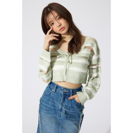 シアーボーダーニットカーディガン