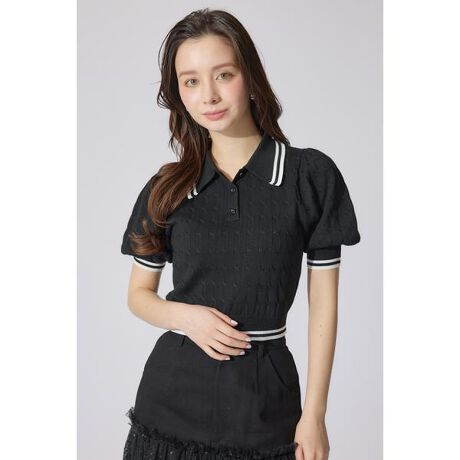 【トレンドのケーブル編みのポロデザイントップス】■ポイントトレンドのケーブル編みをポロカラーに落とし込み、スポーティーさがありながらも新鮮さを取り込んだニットアイテム。襟と袖口、裾に配色ラインを施し、メリハリを持たせたカジュアル過ぎないアイテムです。■ディテールアクセントにケーブル柄の編地がこれまでとは違う一着に仕上げました。パフスリーブのデザインになっているので、気になる二の腕をカバーし、コンパクトな着丈でスタイルアップ効果抜群のサイズ感になっています。■スタイリングデニムパンツのようなカジュアルなボトムスはもちろん、ミニスカートなどのフェミニンなアイテムとの相性もばっちりです。■生地透け感:なし裏 地:なし伸縮性:あり光沢感:なし厚 さ:やや薄い■商品のお気に入り登録お気に入りアイテムの再入荷・在庫1点などの通知を受け取ることができます。[注意事項]※画像の商品はサンプルです。実際の商品と仕様、加工が若干異なる場合があります。※画像の商品は光の照射や角度、お使いのモニター環境により、実物と色味が異なる場合がございます。※着用、お取り扱いの際は、アテンションタグをご確認ください。