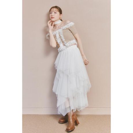 ニュアンスランダムチュールジャストウエストスカート