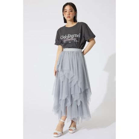 【360度どこから見てもエレガントで華やかなチュールスカート】■ポイントふんだんにチュールフリルを取り入れた優しげな印象のスカート。モードに格上げしたチュールスカートの登場です。やわらかなチュールフリルはランダムにし、ティアードデザインにすることで、1点投入で華やかさと、リッチ感のあるスタイルが完成するようにしました。ウエストは後ろゴムデザインにしているので楽に着用できます。ウエスト下から華やかに広がり落ちるシルエットでメリハリのあるスタイルを後押ししてくれるスカートです。■ディテールランダムデザインを細かくバランスを整えてがデザインしました。360度どこから見ても華やかに映えるチュールスカートです。■スタイリングシンプルなプルオーバーや衿元の開いている抜け感トップスと合わせるのがおすすめ。■生地透け感:あり裏地:あり伸縮性:あり厚さ:中肉■商品のお気に入り登録お気に入りアイテムの再入荷・在庫1点などの通知を受け取ることができます。[注意事項]※画像の商品はサンプルです。実際の商品と仕様、加工が若干異なる場合があります。※画像の商品は光の照射や角度、お使いのモニター環境により、実物と色味が異なる場合がございます。※着用、お取り扱いの際は、アテンションタグをご確認ください。