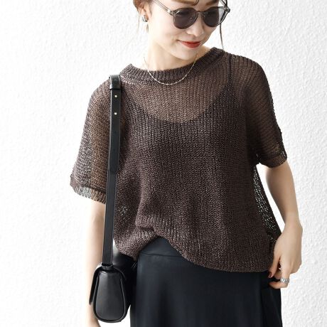 首元は開きすぎないクルーネックで、シアー素材ながらも安心感があって◎
