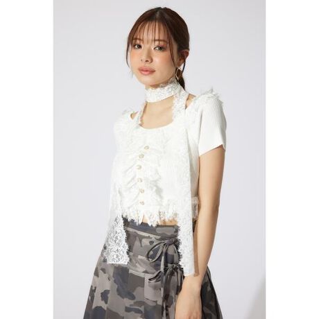 【ヴィンテージ感とフェミニン要素でスタイリングを格上げてくれるニットプルオーバー】■ポイント大きく開いた衿ぐりから前立て、裾に施した、たっぷりギャザーを寄せた愛らしいレーステープが目を引くデザイン。前立てにチュルンとしたボタンデザインを取り入れて甘過ぎないデザインにしました。綺麗目にスタイリングすることもでき、今年らしく都会的なボヘミアンなスタイリングにもしあげてくれるニットトップスです。ネックのチョーカーリボンはヘッドアクセとしても重宝します。■ディティールたっぷりのレースでリッチ感のある装いに。オフショルでも肩にのせても着用できます。■スタイリング程よくフィット感のあるアイテムなので、ボリュームのあるボトムスと合わせればスタイルアップ効果も抜群。デニムやミニボトムに合わせるのもおすすめです。■生地透け感:なし裏 地:なし伸縮性:あり光沢感:なし厚 さ:中肉■商品のお気に入り登録お気に入りアイテムの再入荷・在庫1点などの通知を受け取ることができます。[注意事項]※画像の商品はサンプルです。実際の商品と仕様、加工が若干異なる場合があります。※画像の商品は光の照射や角度、お使いのモニター環境により、実物と色味が異なる場合がございます。※着用、お取り扱いの際は、アテンションタグをご確認ください。