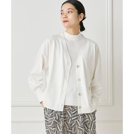 ■デザインシンプルでありながら着た時にちょっと差がつくような、1枚持っていると便利なカーディガン。いつものTシャツやブラウス、ワンピースにさっと羽織るだけで、こなれ感とニュアンスのある雰囲気に。たっぷりとしたシルエットで身体のラインを気にせず着ることができ、インナーにボリュームのある形を選んでも響きにくいのがポイント。■素材特殊な紡績技術を使って開発した清涼感のあるドライタッチな素材です。コットンの特徴である肌触りが良さ、軽さと通気性を持ち、ポリエステルのハリ感が体のラインを拾いづらくしてくれる素材です。・水洗い可同素材のフレンチスリーブニット品番:7152170821同素材のノースリーブニット品番:7152170823■サンプル撮影商品■こちらの商品はサンプルでの撮影となっております。実際の商品とは、サイズや色味、素材、デザイン等の仕様が若干変更になる場合がございます。
