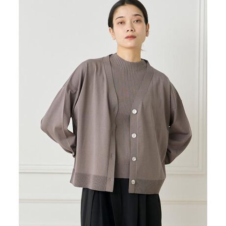 ■デザインシンプルでありながら着た時にちょっと差がつくような、1枚持っていると便利なカーディガン。いつものTシャツやブラウス、ワンピースにさっと羽織るだけで、こなれ感とニュアンスのある雰囲気に。たっぷりとしたシルエットで身体のラインを気にせず着ることができ、インナーにボリュームのある形を選んでも響きにくいのがポイント。■素材特殊な紡績技術を使って開発した清涼感のあるドライタッチな素材です。コットンの特徴である肌触りが良さ、軽さと通気性を持ち、ポリエステルのハリ感が体のラインを拾いづらくしてくれる素材です。・水洗い可同素材のフレンチスリーブニット品番:7152170821同素材のノースリーブニット品番:7152170823■サンプル撮影商品■こちらの商品はサンプルでの撮影となっております。実際の商品とは、サイズや色味、素材、デザイン等の仕様が若干変更になる場合がございます。