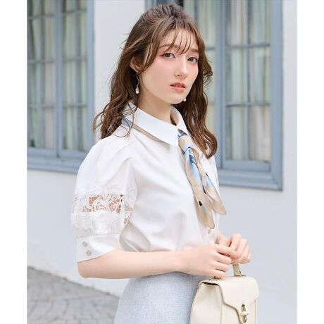 大人気のロングセラーブラウスが、夏も着やすい五分袖になって登場♪【さりげない肌見せが清楚な中にほど良い抜け感を醸し出す、袖レースシャツブラウス】【Point】・SWINGLEでシーズンを跨いでロングセラーを誇る、レース切替シャツブラウス。・今季は台衿ボタンをパールビジューにアップデート。よりエレガントな印象を引き立てます。・袖口の切替レースが、コーディネートに洒落感をプラスします。・丸みのある上品なボリュームスリーブが、女性らしい柔らかい印象に仕立ててくれます。・スカートにもパンツにも合わせられる着回しのしやすさと、オンオフ兼用で着られるデザインが、幅広いシーンで活躍する一枚です。【Fabric】伸縮性のあるシワになりにくい生地を使用したシャツブラウスです。肌触りがさらっとしていて、とても滑らかな質感の生地を使用しており、長時間の着用もストレスフリーに着ていただけます。ご自宅での洗濯が可能なのでお手入れもしやすく、安心して着用いただけます。ケア方法:手洗い可能透け感:なし(オフのみ多少あり)裏地:なし伸縮性:多少あり光沢感:なし生地の厚さ:中肉
