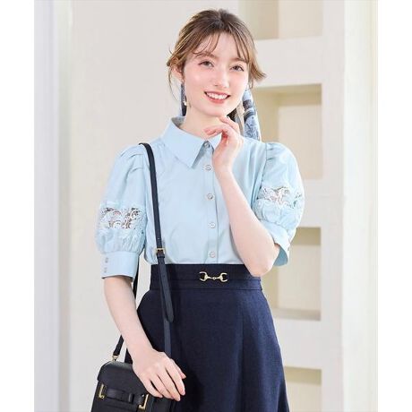 大人気のロングセラーブラウスが、夏も着やすい五分袖になって登場♪【さりげない肌見せが清楚な中にほど良い抜け感を醸し出す、袖レースシャツブラウス】【Point】・SWINGLEでシーズンを跨いでロングセラーを誇る、レース切替シャツブラウス。・今季は台衿ボタンをパールビジューにアップデート。よりエレガントな印象を引き立てます。・袖口の切替レースが、コーディネートに洒落感をプラスします。・丸みのある上品なボリュームスリーブが、女性らしい柔らかい印象に仕立ててくれます。・スカートにもパンツにも合わせられる着回しのしやすさと、オンオフ兼用で着られるデザインが、幅広いシーンで活躍する一枚です。【Fabric】伸縮性のあるシワになりにくい生地を使用したシャツブラウスです。肌触りがさらっとしていて、とても滑らかな質感の生地を使用しており、長時間の着用もストレスフリーに着ていただけます。ご自宅での洗濯が可能なのでお手入れもしやすく、安心して着用いただけます。ケア方法:手洗い可能透け感:なし(オフのみ多少あり)裏地:なし伸縮性:多少あり光沢感:なし生地の厚さ:中肉