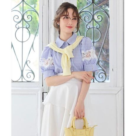 大人気のロングセラーブラウスが、夏も着やすい五分袖になって登場♪【さりげない肌見せが清楚な中にほど良い抜け感を醸し出す、袖レースシャツブラウス】【Point】・SWINGLEでシーズンを跨いでロングセラーを誇る、レース切替シャツブラウス。・今季は台衿ボタンをパールビジューにアップデート。よりエレガントな印象を引き立てます。・袖口の切替レースが、コーディネートに洒落感をプラスします。・丸みのある上品なボリュームスリーブが、女性らしい柔らかい印象に仕立ててくれます。・スカートにもパンツにも合わせられる着回しのしやすさと、オンオフ兼用で着られるデザインが、幅広いシーンで活躍する一枚です。【Fabric】伸縮性のあるシワになりにくい生地を使用したシャツブラウスです。肌触りがさらっとしていて、とても滑らかな質感の生地を使用しており、長時間の着用もストレスフリーに着ていただけます。ご自宅での洗濯が可能なのでお手入れもしやすく、安心して着用いただけます。ケア方法:手洗い可能透け感:なし(オフのみ多少あり)裏地:なし伸縮性:多少あり光沢感:なし生地の厚さ:中肉